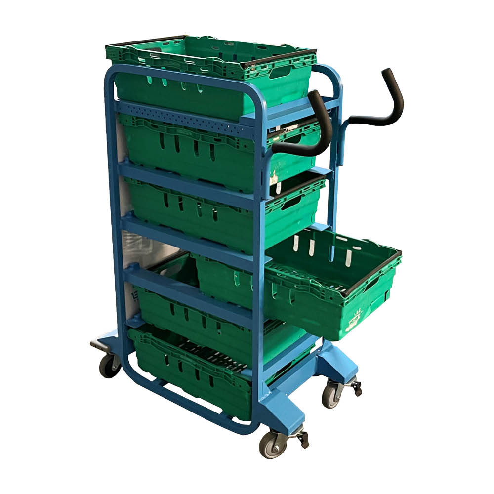Our trolleys are constantly being developed and improved to meet the needs of our clients. All retailers are unique in their requirements for tote and picking trolleys, so we offer options for space-saving trolleys, lightweight aluminium trolleys, heavy-duty steel trolleys, shelf trolleys and we can develop designs that fit your specific tote or box sizes and shapes.