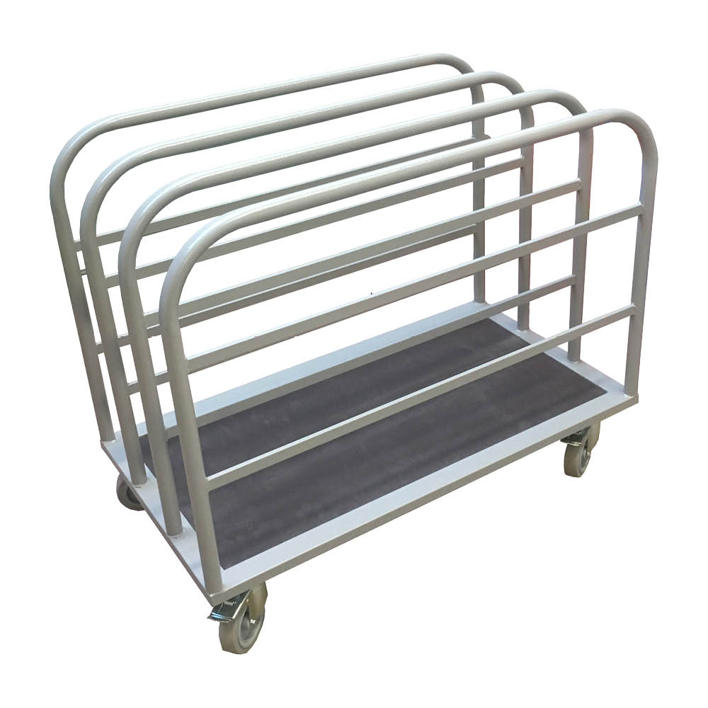 Our custom-made rack trolleys are available in any size, built with sturdy steel frames and robust castor wheels. We can make them to fit any height and width boards, sheet materials, packaging, glass, building materials and more.