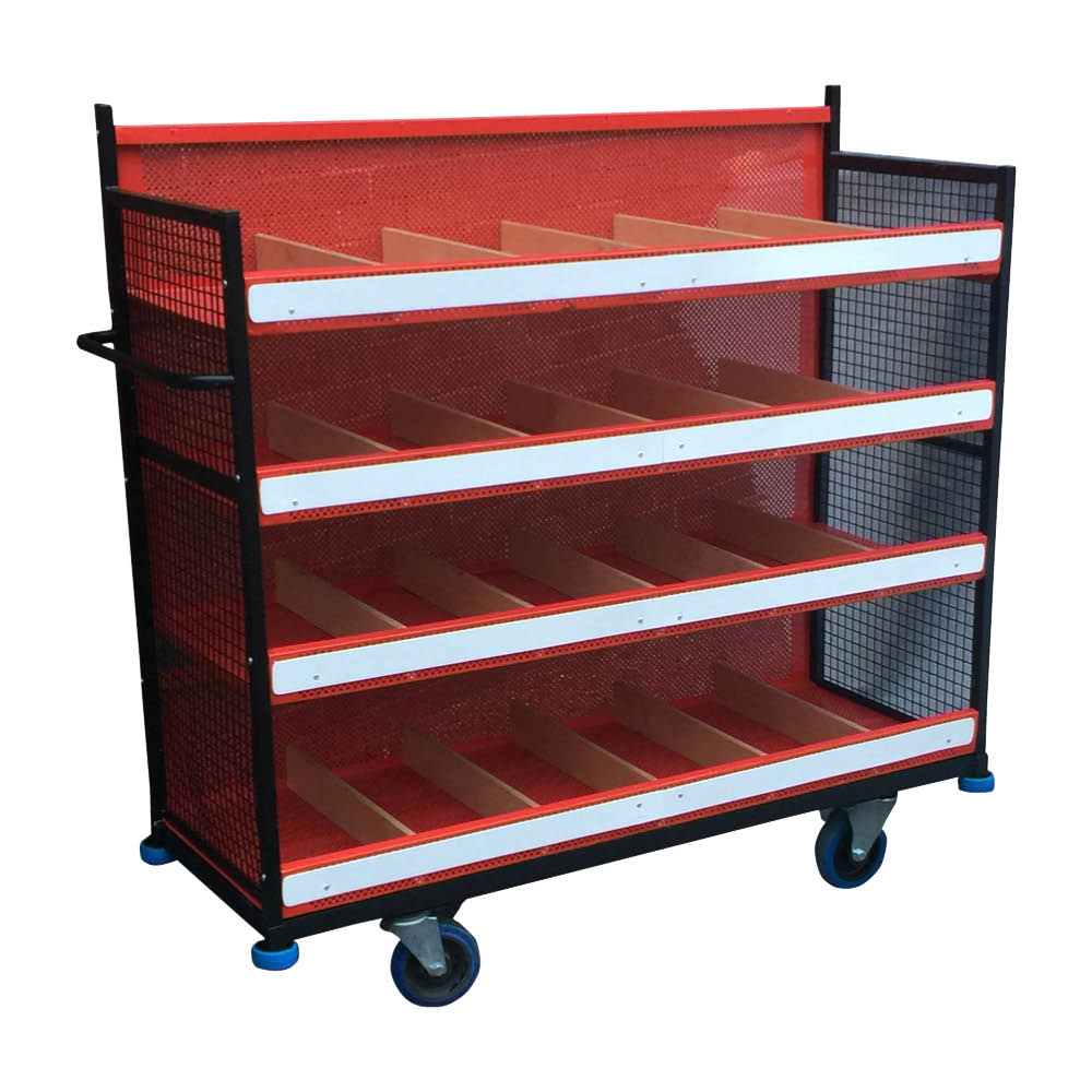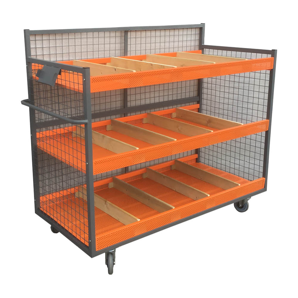 Norseman have developed a wide range of shelf trolleys to support retailers both on the shop floor and in the warehouse. We’ve made everything from flat, tilt shelf and tray trolleys to shelf trolleys with additional baskets and dividers.