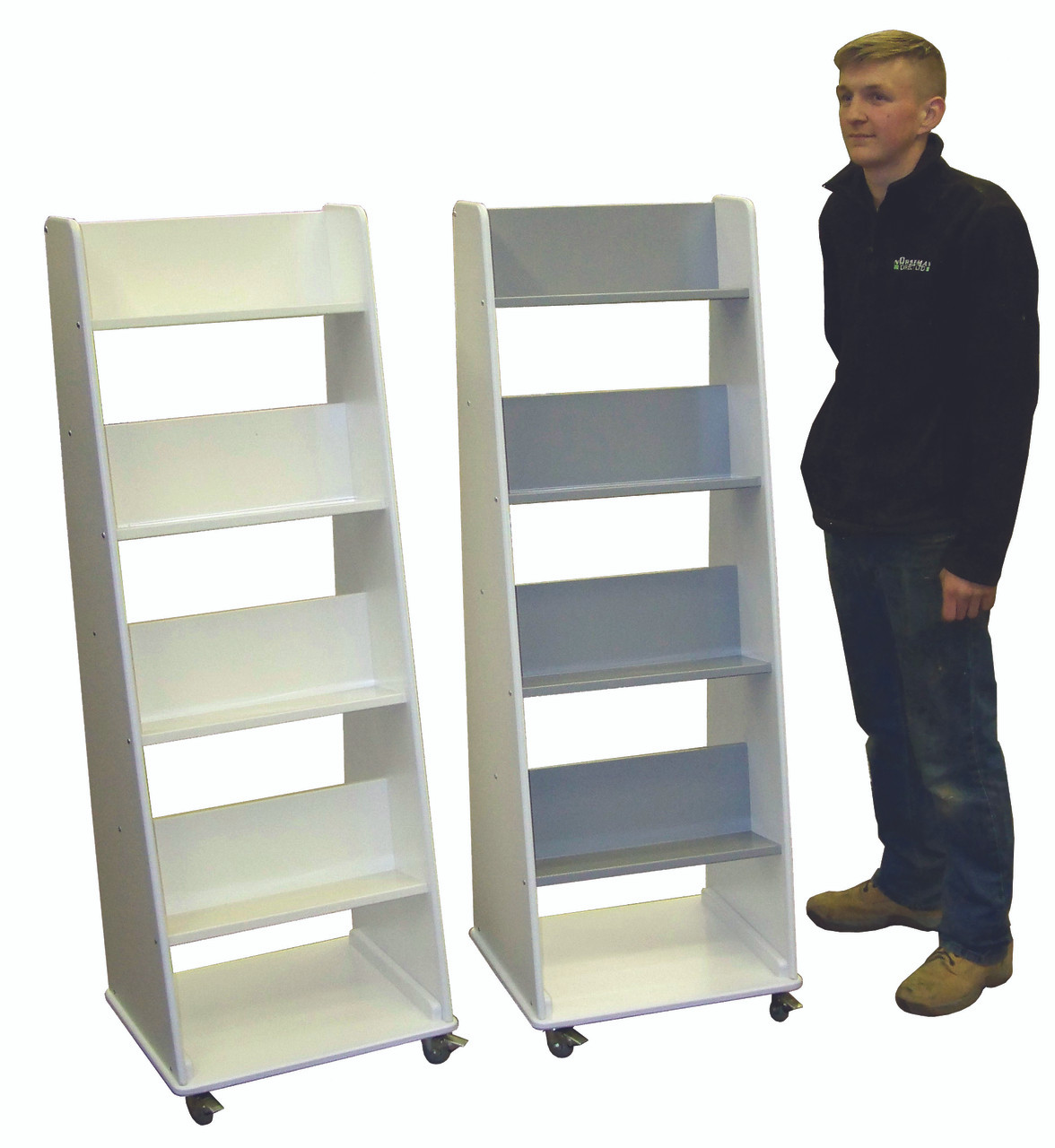 These sturdy 4 shelf library book display units can be supplied in a range of fun colours. With robust metal shelves and additional signage they’re perfect for displays.