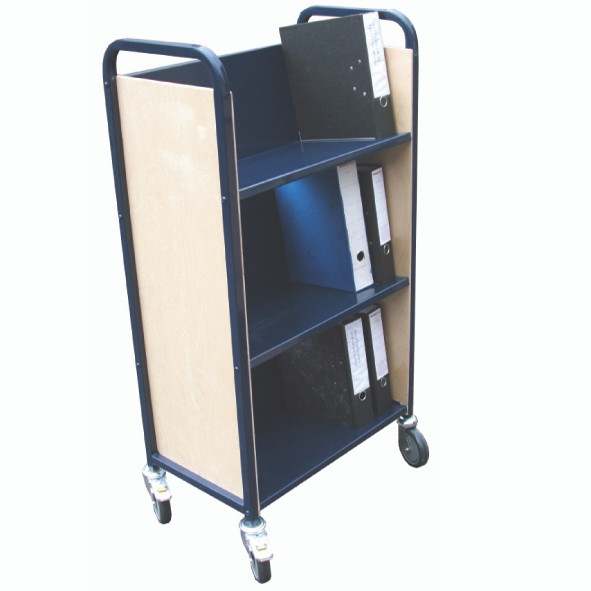 Large book trolley with 2 trough style shelves. The trolley comes complete with locking castors so the unit can be moved and locked into place even when full.