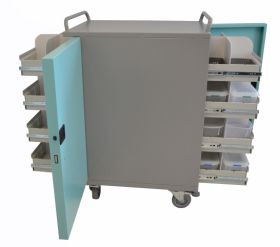 These secure original large pack trolley medicine cabinets can be made to any size and are available in any colour and made with mild steel.