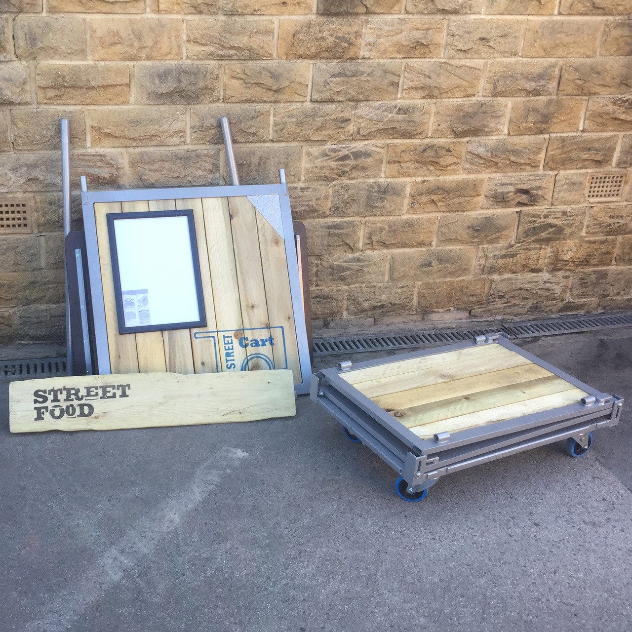 This mobile street cart can be a featured in dining halls but also moved around easily to deliver cooked food. Comes apart to make it completely portable.