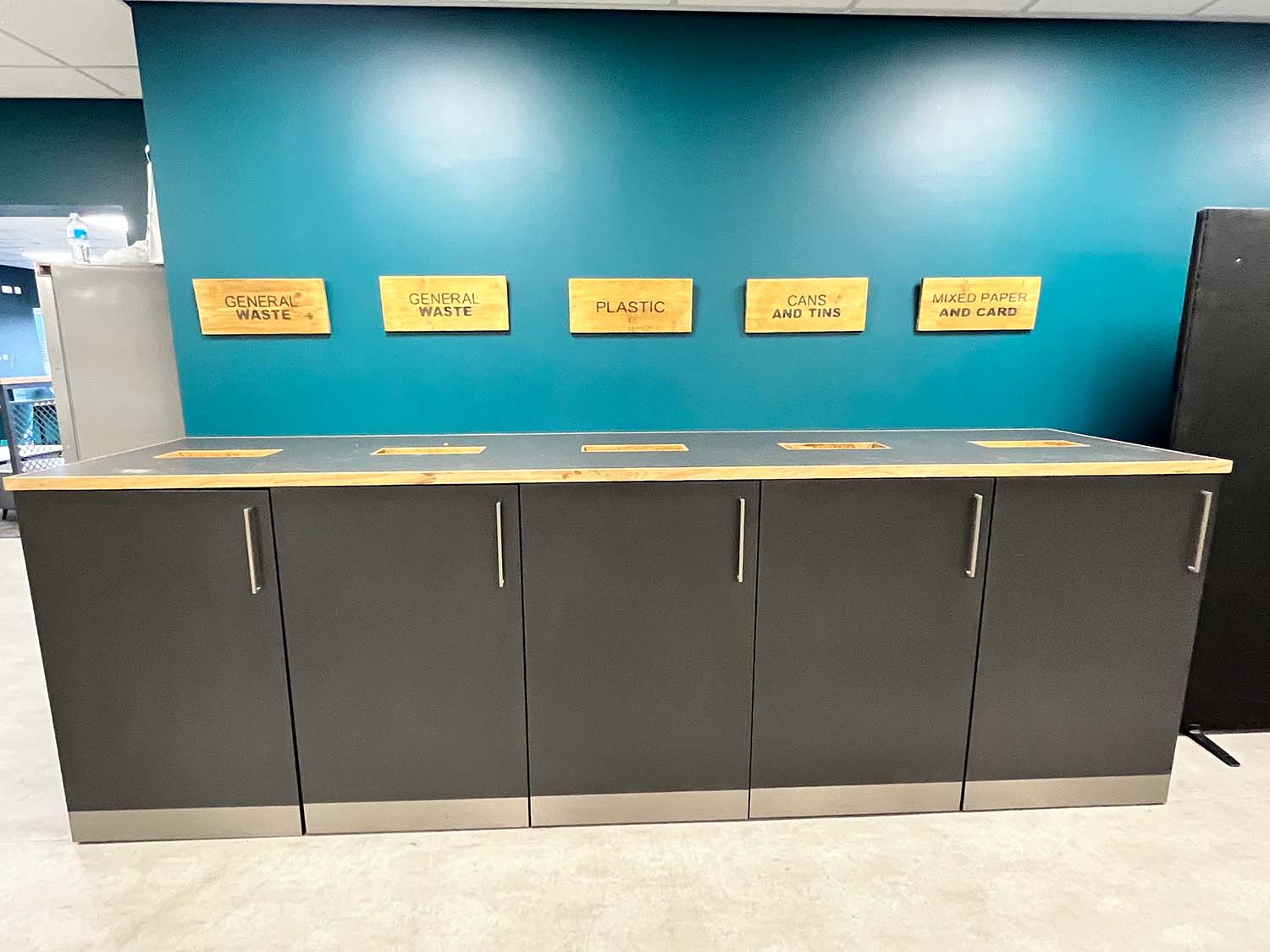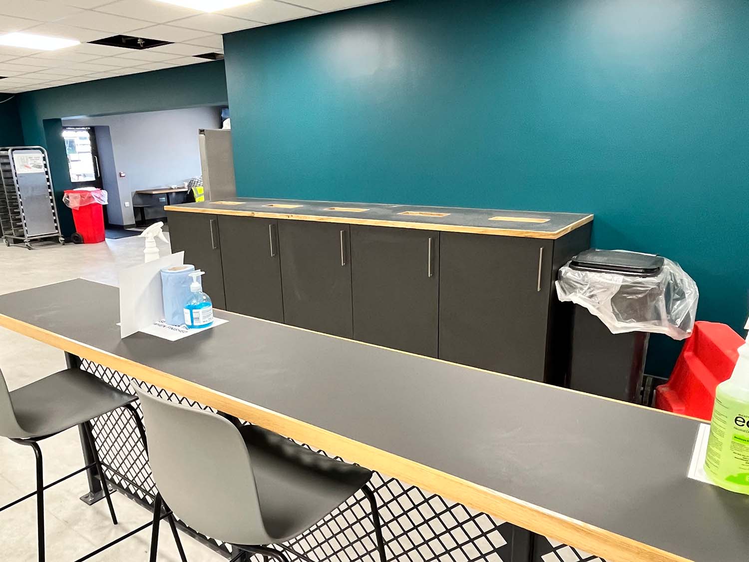 - Catering and cafeteria equipment including food prep, food waste, tables and seating.